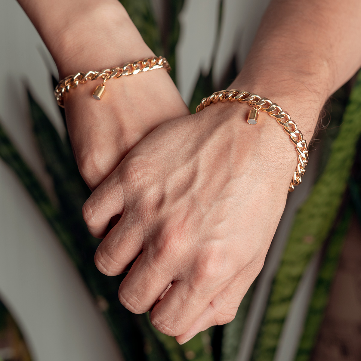 دستبند آهنربایی یکی از زیباترین و البته عاشقانه ترین اکسسوری ها برای زوجین و یا دوستان صمیمی می باشد که می خواهند پیمان بین خود را قوی تر کنند!به محض اینکه دستتون نزدیک هم شد دیگر براحتی نمی توانید از یکدیگر جدا شوید چون توسط آهنربایی قوی بهم پیوند می خورید که بهتون یادآوری بشه در تمام طول زندگی دست در دست هم باشید.آهنربای استفاده شده در دستبند سبک بوده و در حالت تکی نیز جلوه ای زیبا دارد بهمین دلیل در استفاده ی روزمره خود از داشتن و استفاده از آن لذت خواهید برد.این دستبند آهنربایی عاشقانهدر بهترین کیفیت و زیباترین جلوه ساخته شده است که مطابق سلیقه مشتریان گرانقدر خود باشد. همچنین این دستبند رنگ ثابت و ضد حساسیت بوده که بتوانید تا مدتی طولانی بدون افت کیفیت و بدون آنکه پوست دستتون به آن حساسیت کند از آن استفاده کنید.